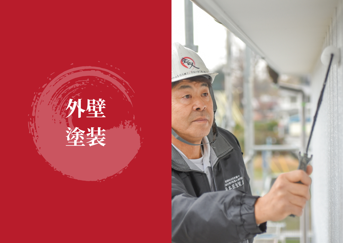まずは下塗り。これは壁面と塗料をしっかりと付ける役割がある大切な工程です。壁面によって、それぞれに合った「下地強化材」を使用するのがポイントです。